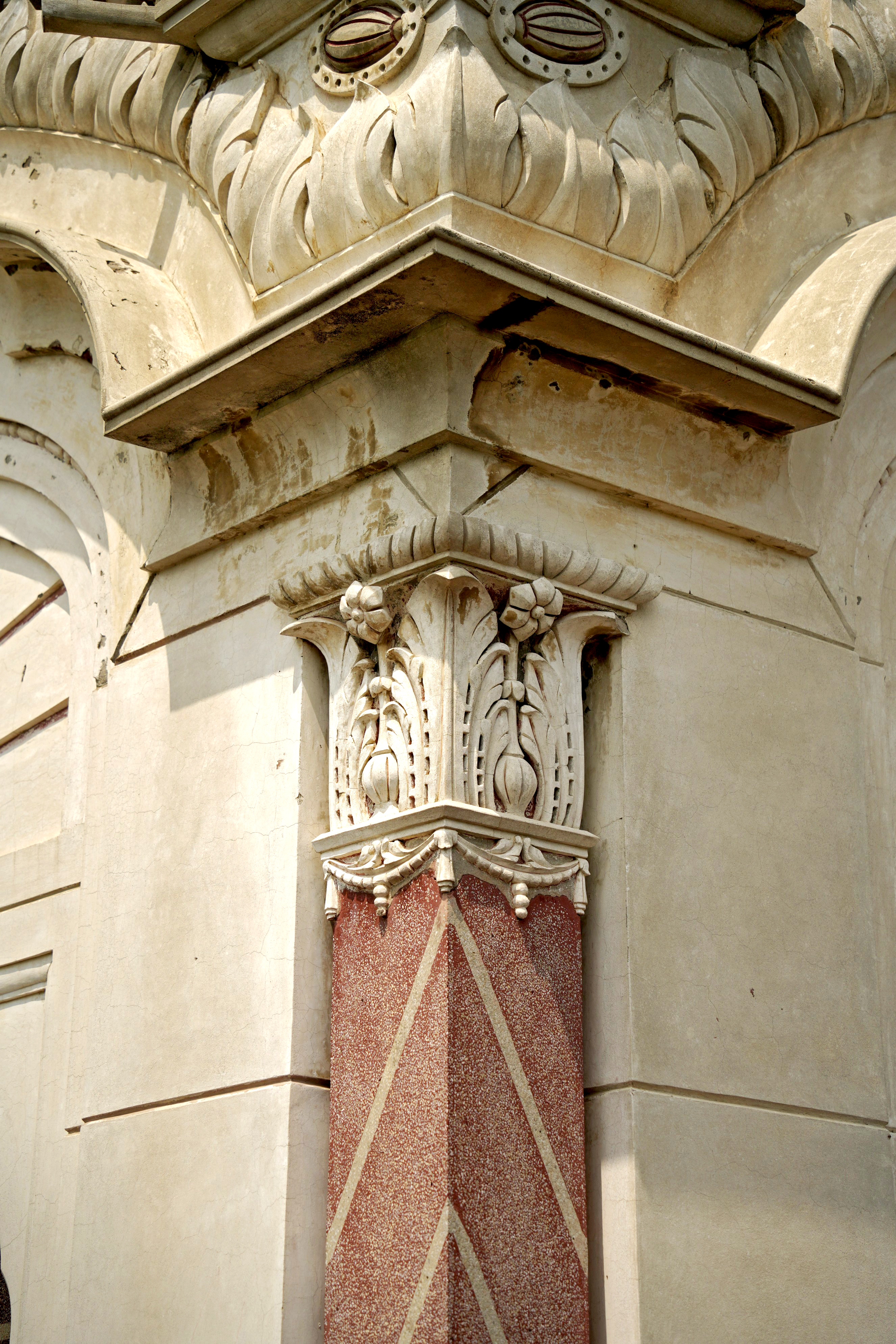 • Vegetation Damage - Unwanted growth, including a peepal tree on the first-floor corner, poses a significant threat to the railings, ghumtis, and cornices.