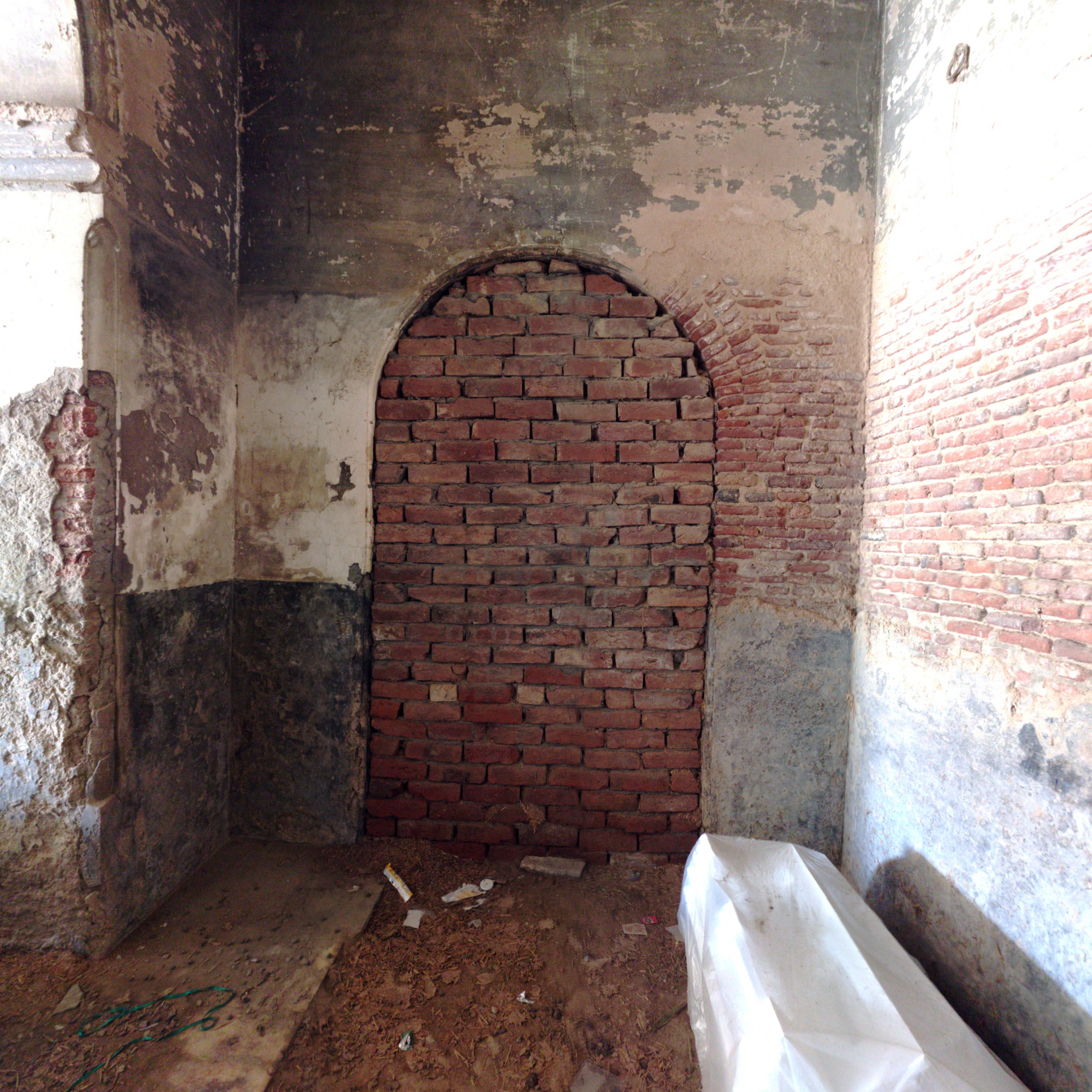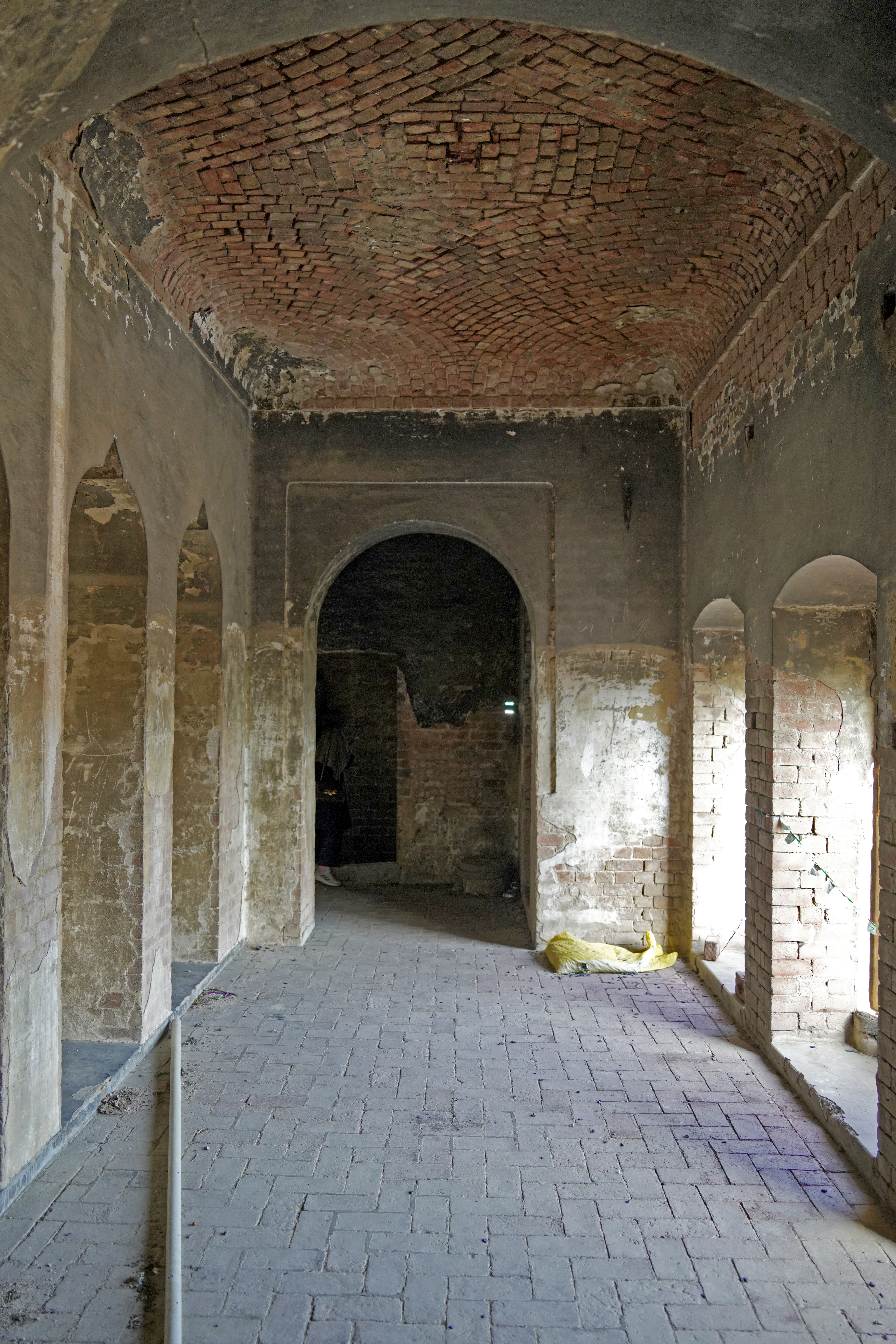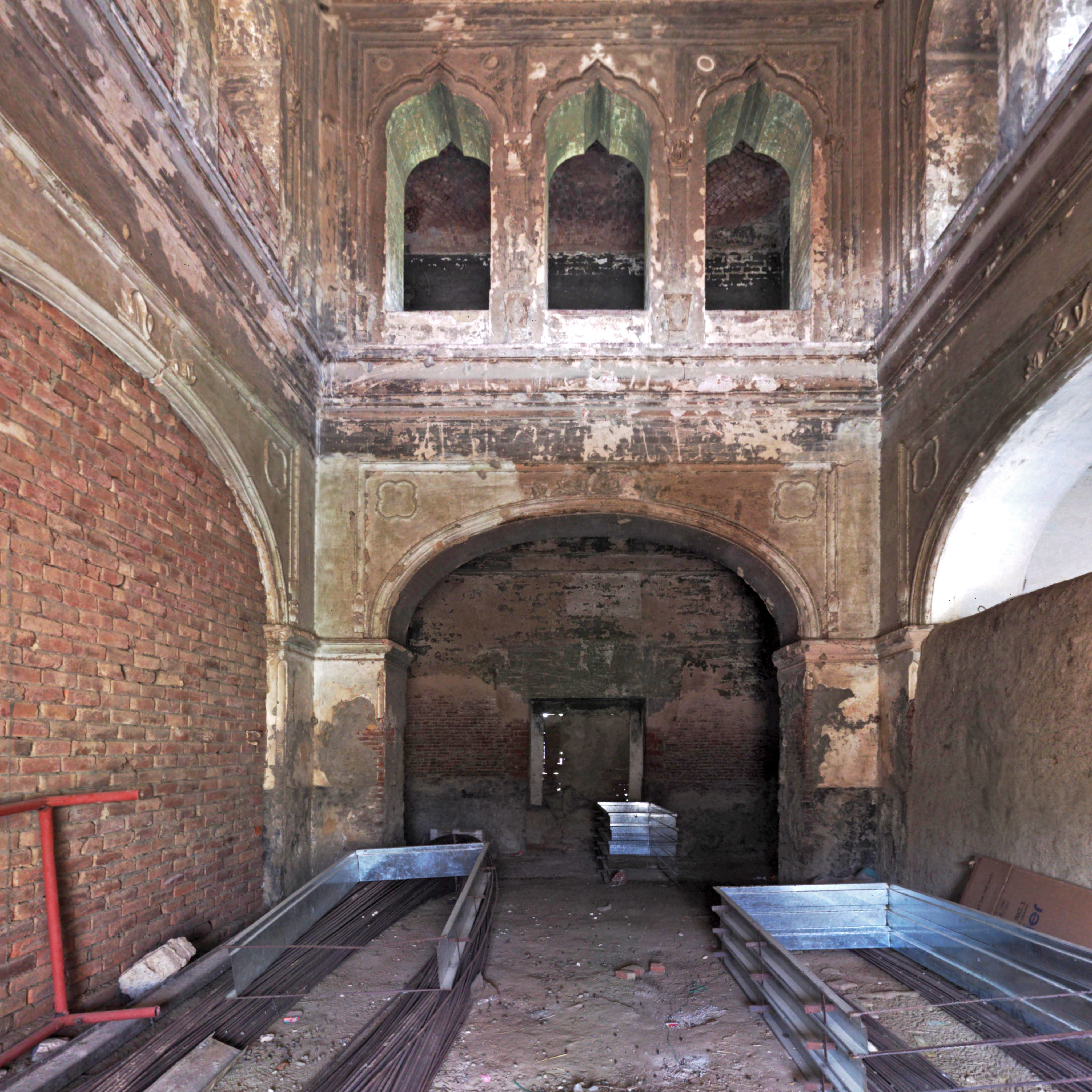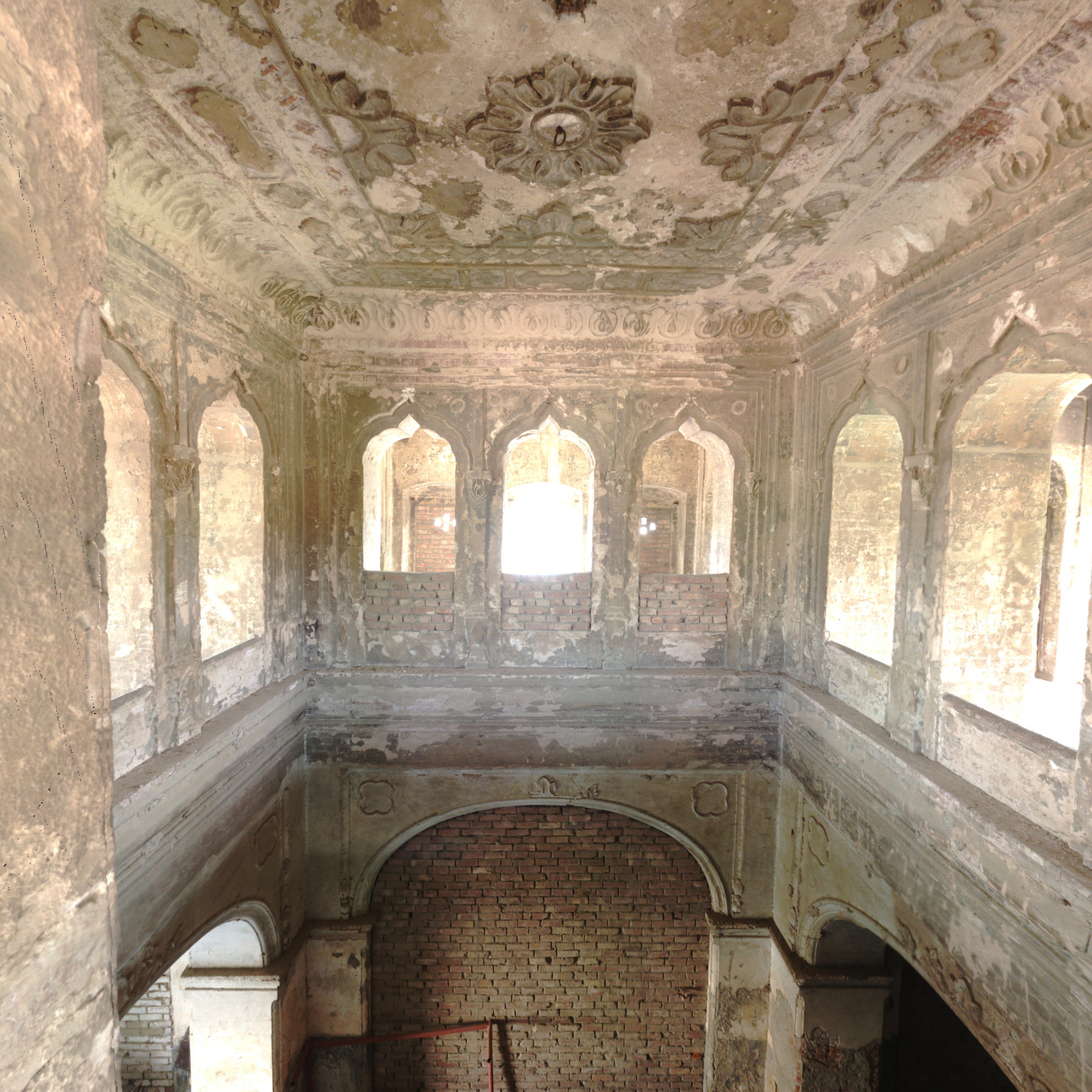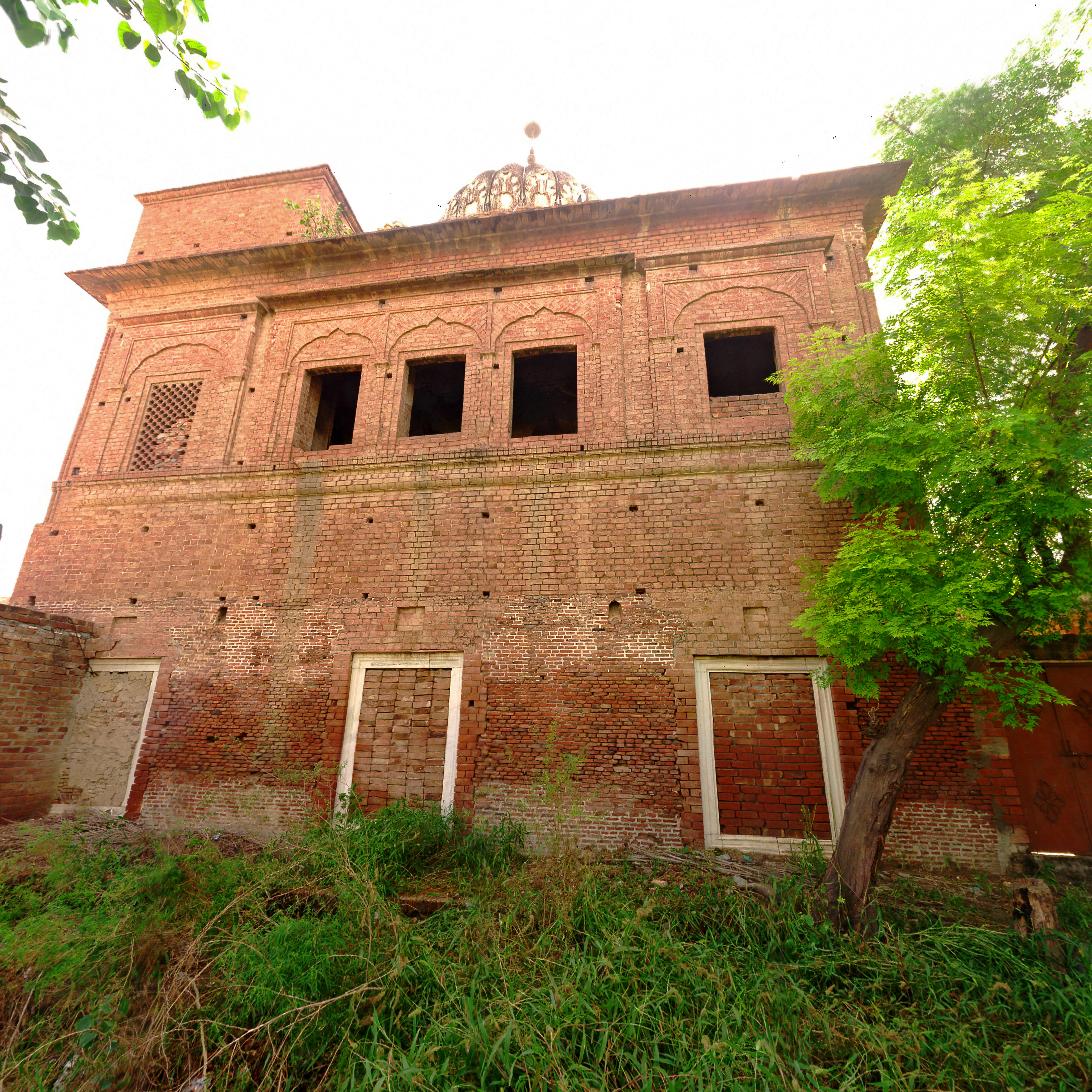 Interestingly, numerous holes visible in the façade suggest that the Gurdwara was left unfinished. These holes, likely intended for scaffolding, would have been sealed during the plastering and decorative phases, indicating that plans for further embellishments were interrupted, possibly due to the Partition in 1947. The abandonment of the site just seven years after its significant upgradation halted any further sewa (community service), leaving portions of the structure unplastered and devoid of the intended details.