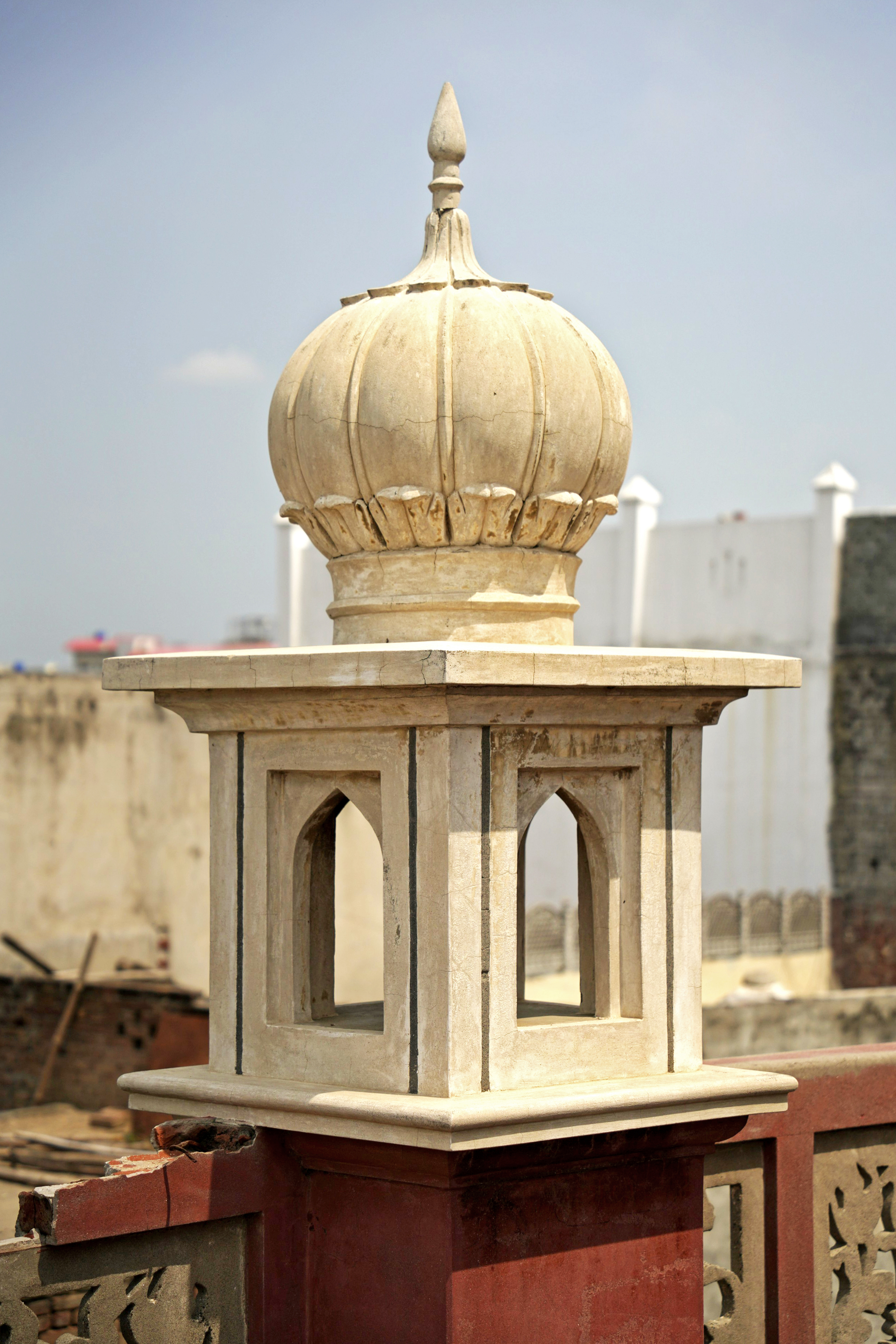 • Vegetation Damage - Unwanted growth, including a peepal tree on the first-floor corner, poses a significant threat to the railings, ghumtis, and cornices.