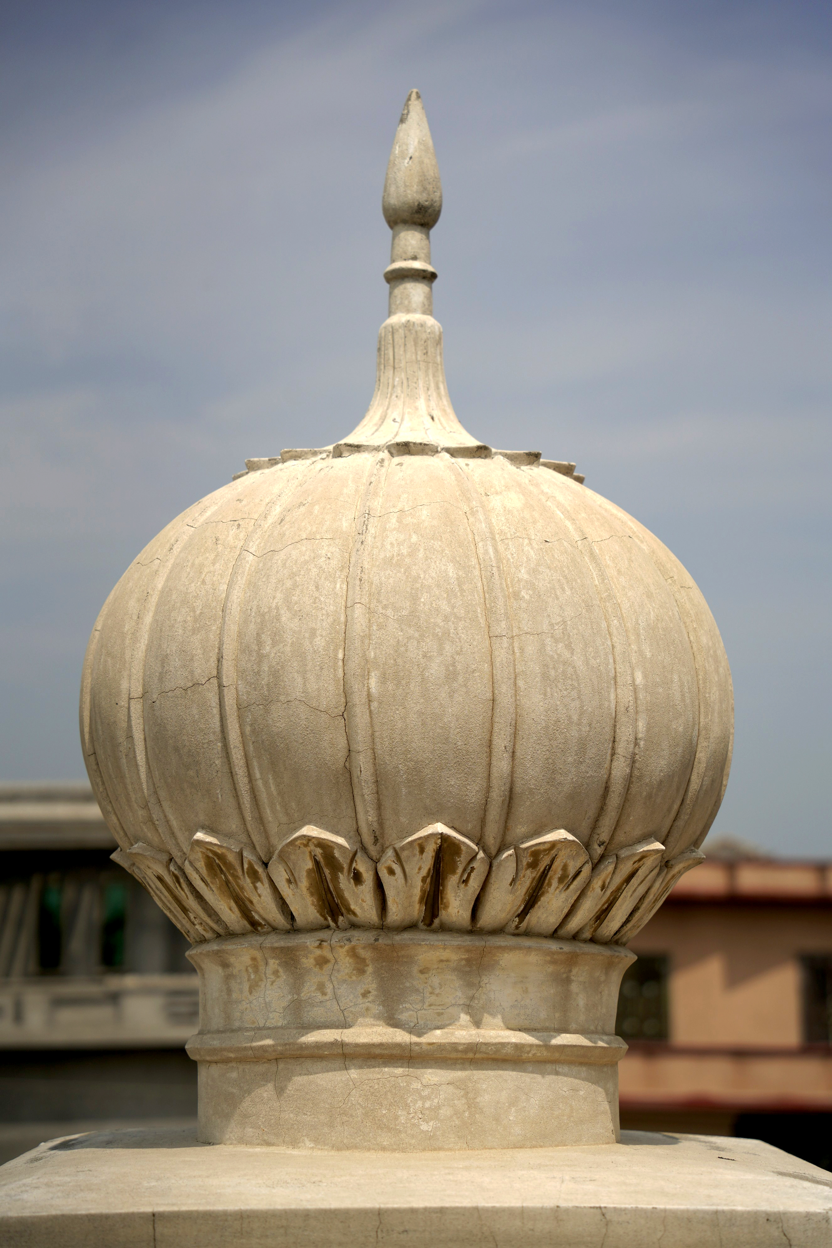 The central dome, constructed of reinforced concrete, is a visual and structural masterpiece. The roof tiles above the terrace complement the dome's grandeur. Frescoes with geometric patterns enrich the interior, while the external dome features intricate floral motifs. The sukhasan dome, though smaller, exhibits traces of biofilm and vegetation growth, with its petals partially concealed. The structure's external height is approximately 18.5 feet, with a compact plan of 9.5'x9.5'.
