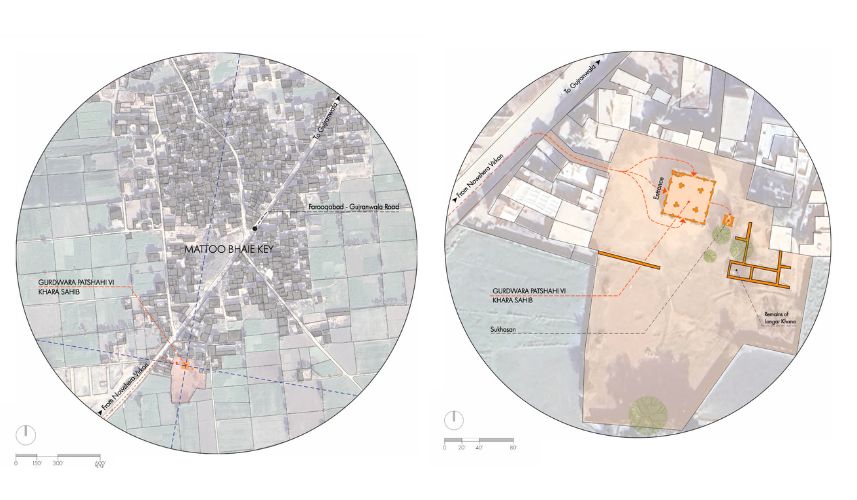 The Gurdwara is located adjacent to the main road connecting Farooqabad and Gujranwala. This proximity ensures visibility and ease of access for visitors and pilgrims traveling from nearby urban and rural areas. Itis surrounded by a mix of traditional village houses and modern brick-and-concrete structures. Approximately 40% of the settlements have been converted into three-story modern residences, with several others currently under construction. This gradual transformation reflects the village’s evolving architectural and socio-economic landscape.