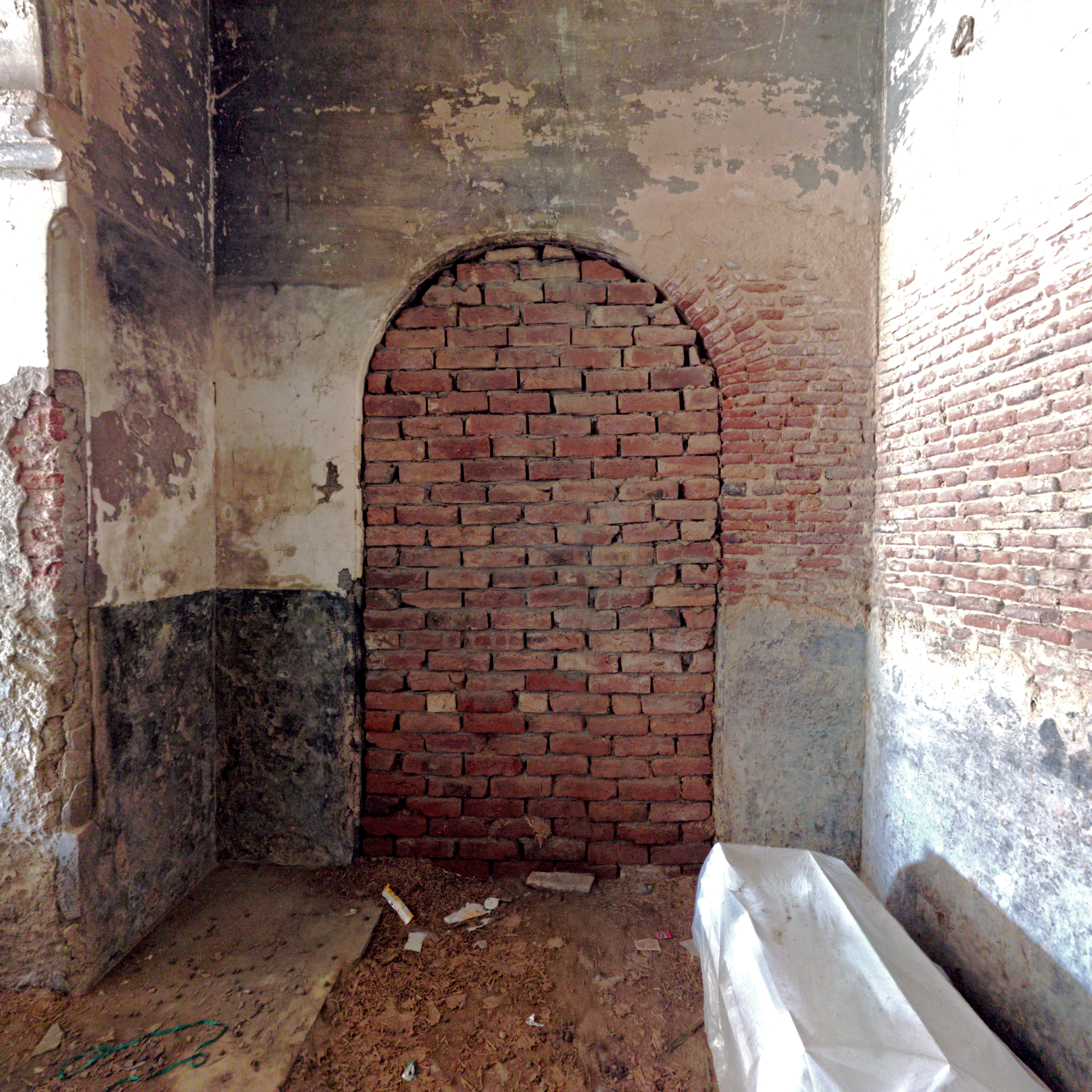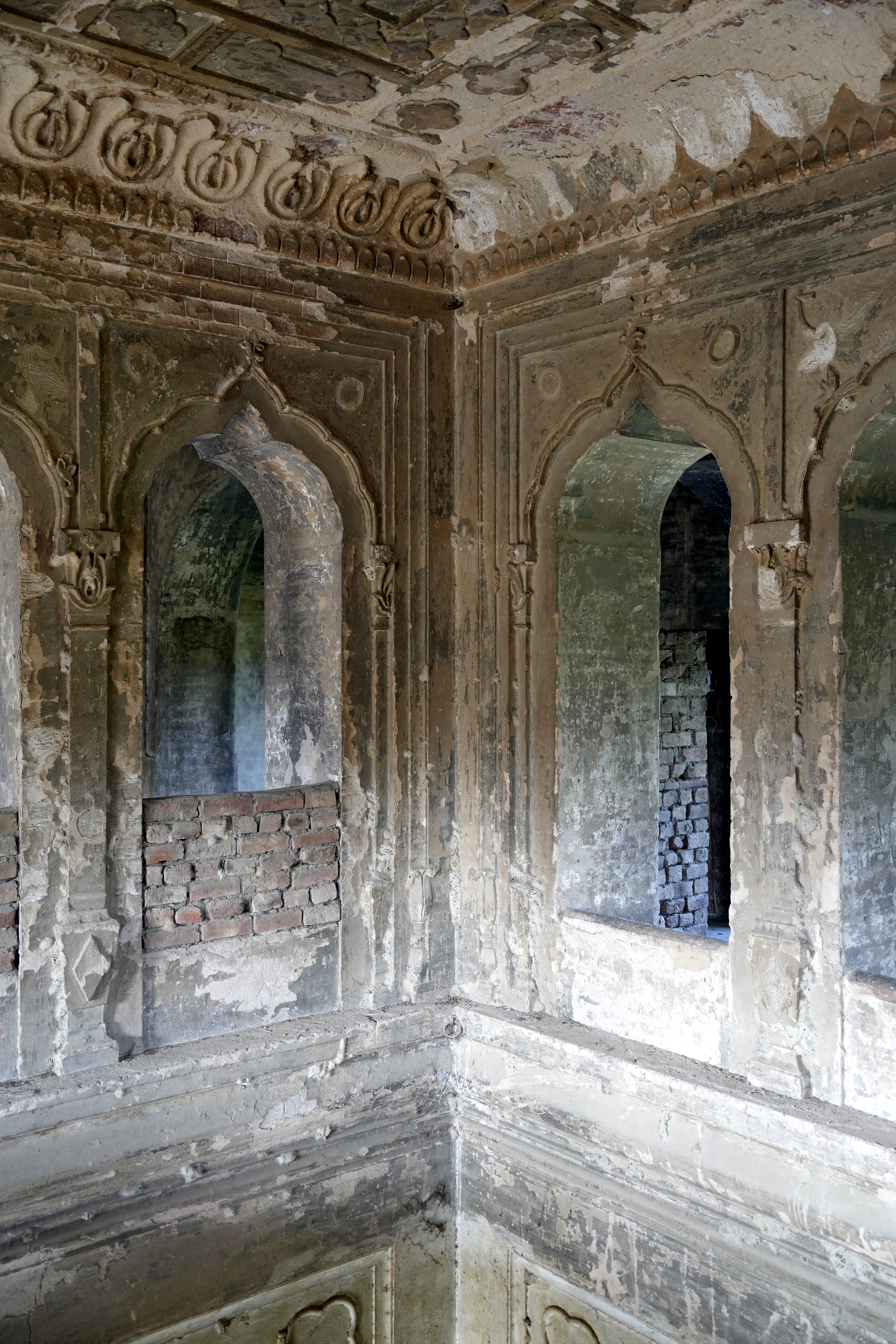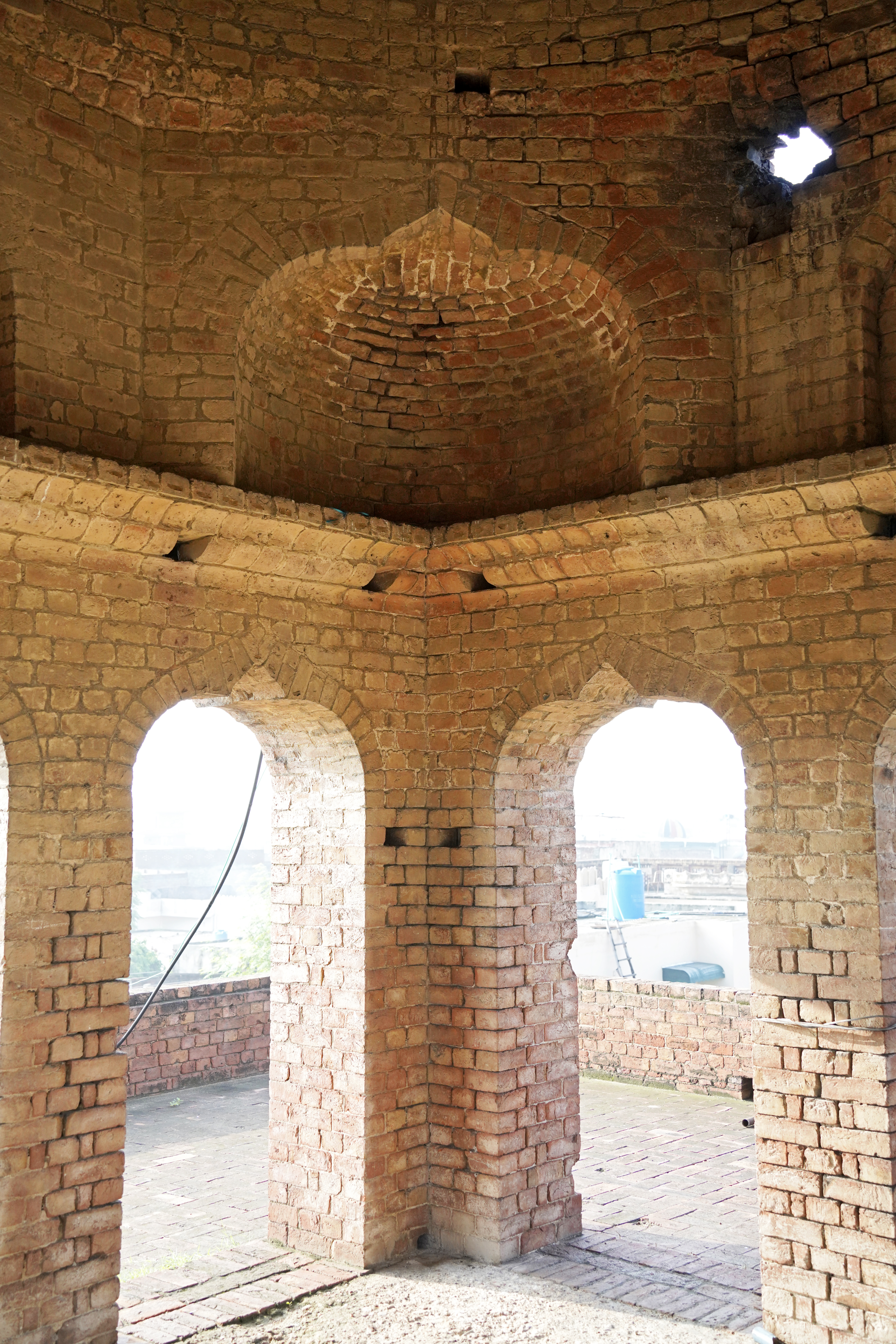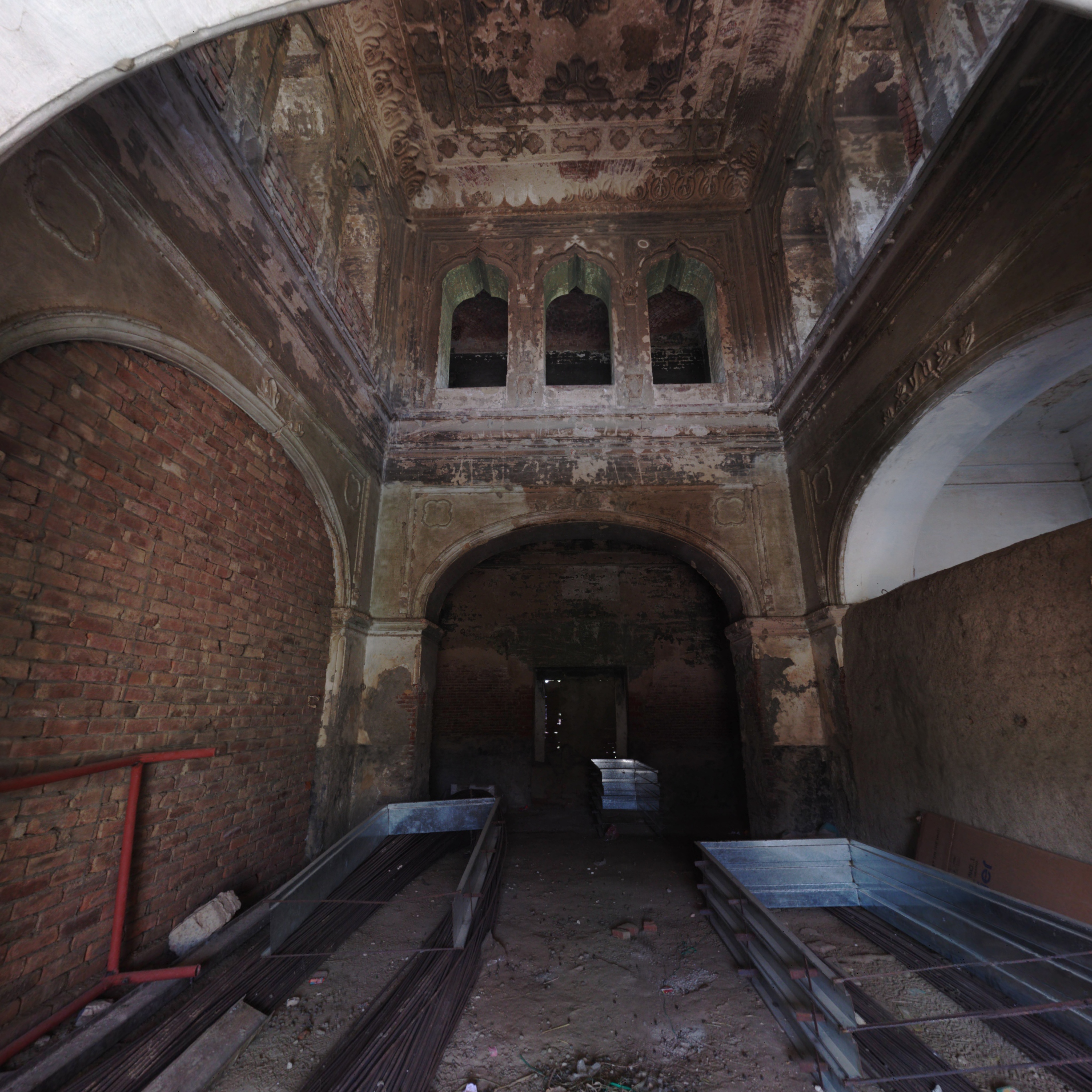 Interestingly, numerous holes visible in the façade suggest that the Gurdwara was left unfinished. These holes, likely intended for scaffolding, would have been sealed during the plastering and decorative phases, indicating that plans for further embellishments were interrupted, possibly due to the Partition in 1947. The abandonment of the site just seven years after its significant upgradation halted any further sewa (community service), leaving portions of the structure unplastered and devoid of the intended details.
