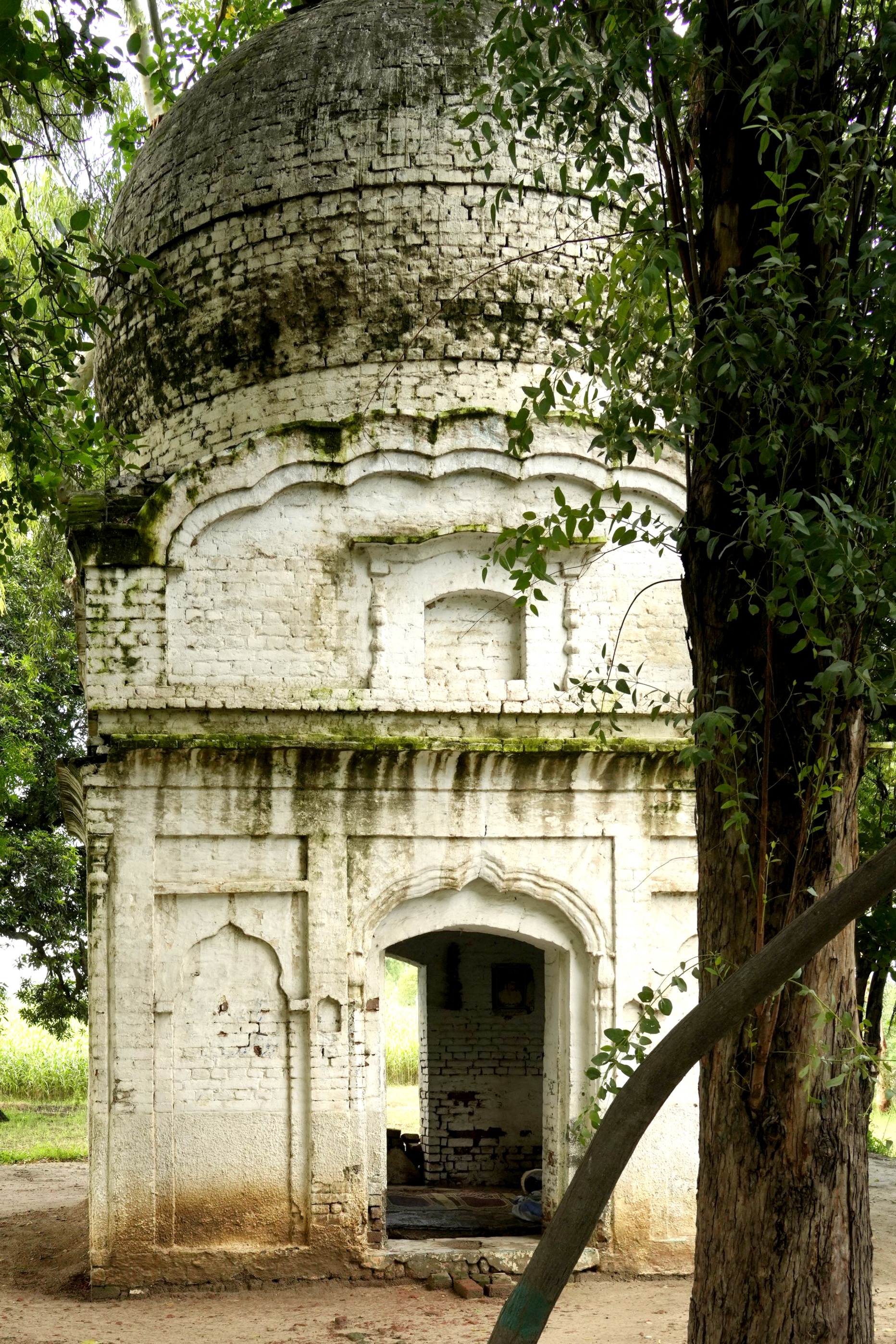 The dome itself exhibits signs of incompletion. The groove around the base of the dome and the rough texture of the bricks in the internal section of the drum suggest that it was originally intended to be adorned with lotus motifs, a common decorative element in Sikh domes symbolizing purity and spiritual awakening. However, these embellishments were never realized, leaving the structure in a raw, unadorned state. This incompletion adds a layer of historical intrigue to the gurdwara, reflecting the interrupted narratives of the region's cultural and religious heritage.